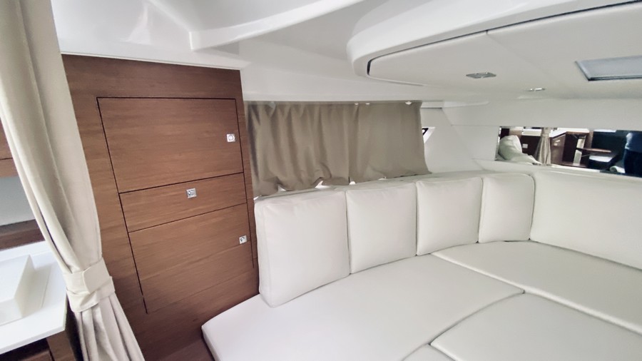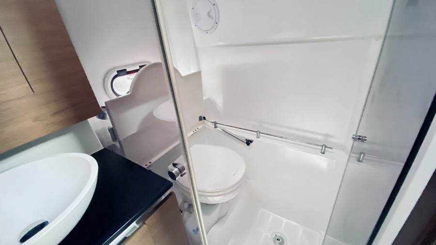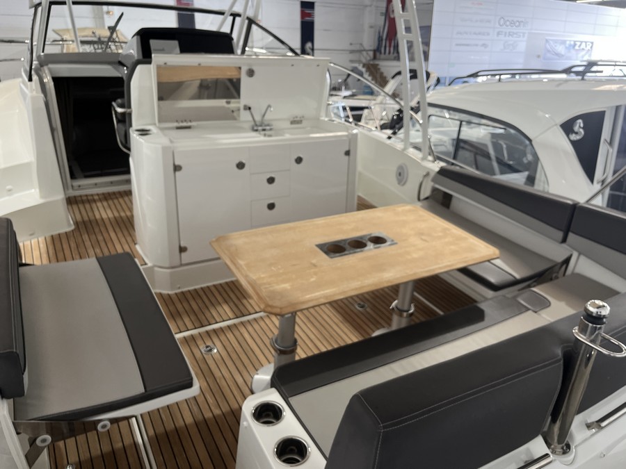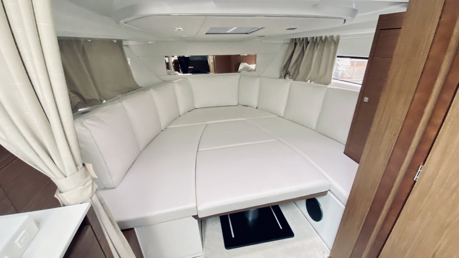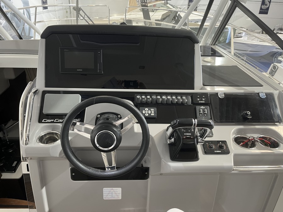 Le Cap Camarat 10.5 WA, un day-boat polyvalent et performant apprécié pour ses qualités marines et son confort à bord. La carène à double step conçue par Michael Peters assure une navigation stable et confortable, même par mer formée. Le bateau déjauge dès 17 nœuds et atteint jusqu’à 44 nœuds en pointe, offrant un pilotage rassurant. Le cockpit spacieux avec cuisine extérieure, bain de soleil avant et T-Top intégré permet de profiter de moments conviviaux à bord. L’intérieur lumineux offre une cabine arrière double, une salle d’eau séparée et un carré transformable, idéal pour des escapades en famille ou entre amis. Ce modèle est équipé d’un T Top, pack fusio RA 70N + 4 HP extérieurs, du pack ventilation, d’un mât de ski et de projecteurs sous marin. Achat possible hors taxe. Visite posssible tous les jours sur rendez – vous. N’hésitez pas à nous contacter si vous souhaitez plus d’informations.