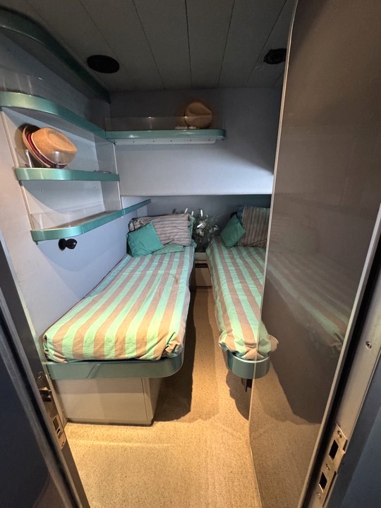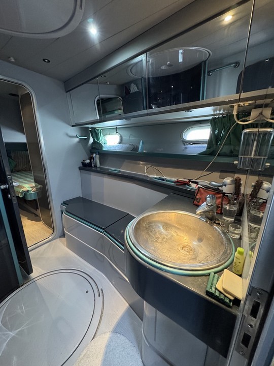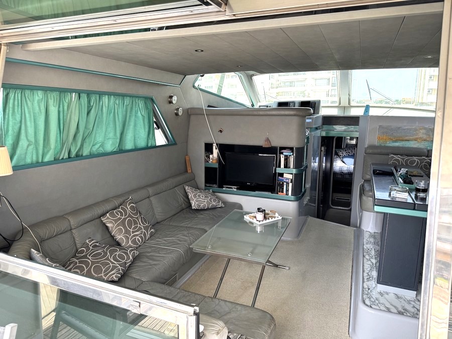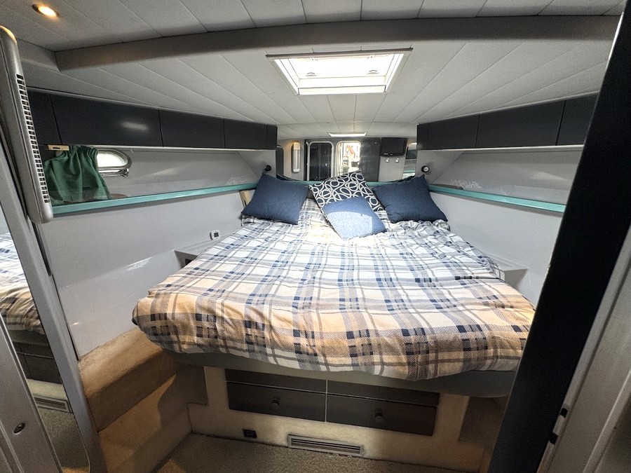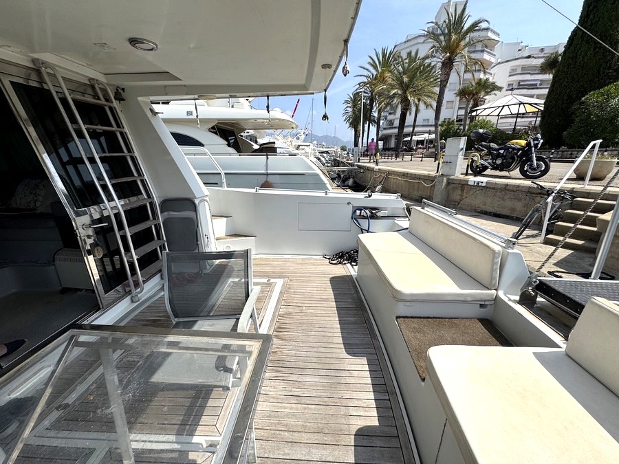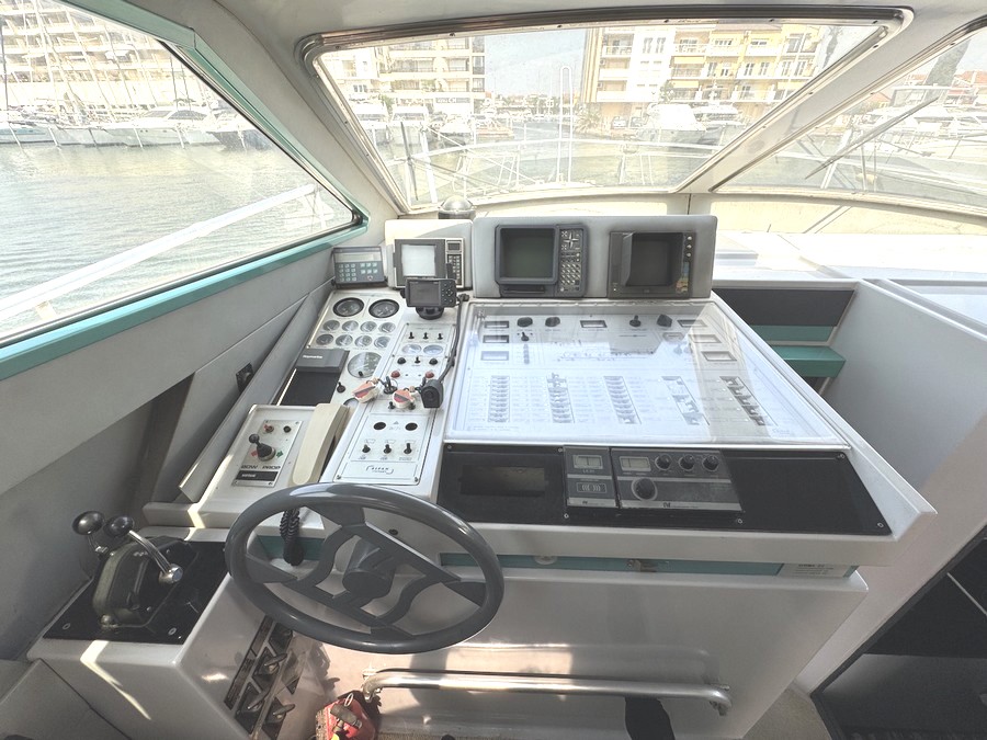 Le Ferretti Altura 52 est une vedette de croisère flybridge conçue pour des croisières conviviales. L’ADN Ferretti est mis en avant avec des intérieurs élégants et des extérieurs accueillants. Cette version est équipée de 3 cabines et 2 salles de bain et d’une cabine marin. La cuisine est entièrement équipée et le salon/salle à manger offre de grands volumes. Sa motorisation de 2 X 500CV diesel permet d’avoir une vitesse de croisière convenable avec une consommation modérée.