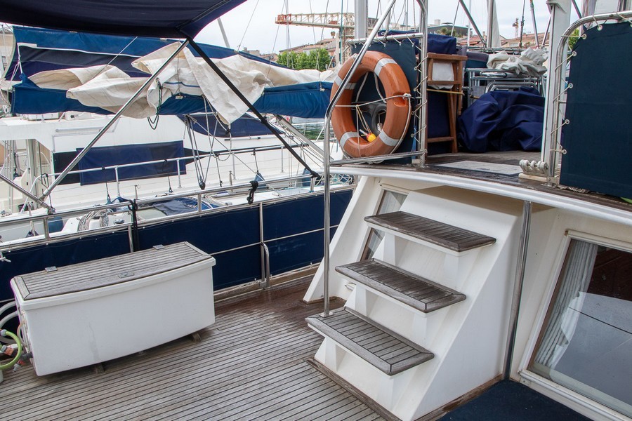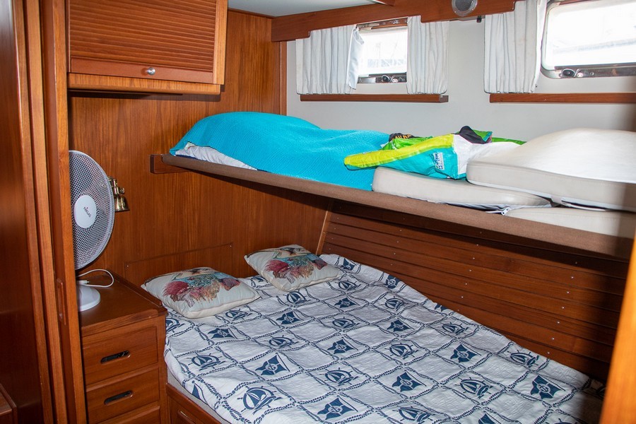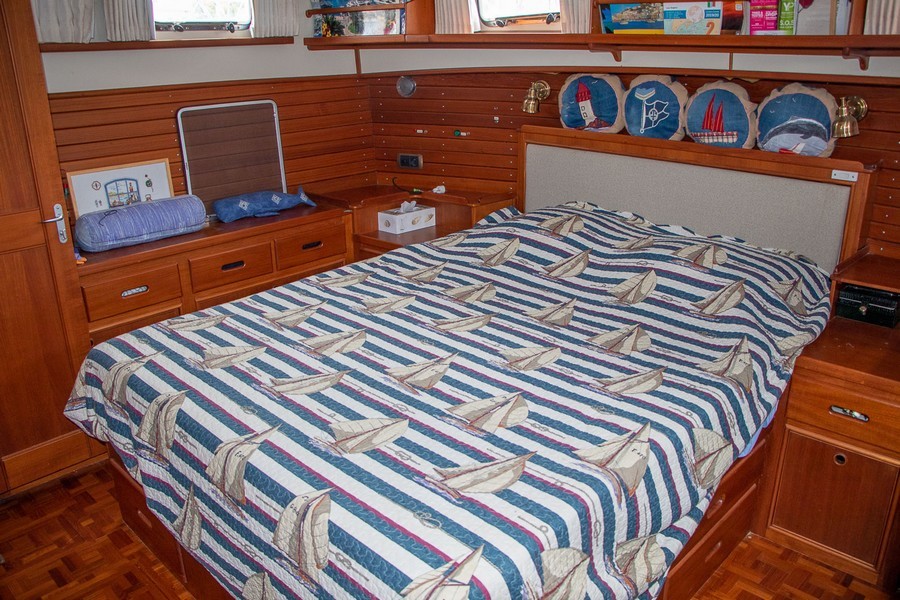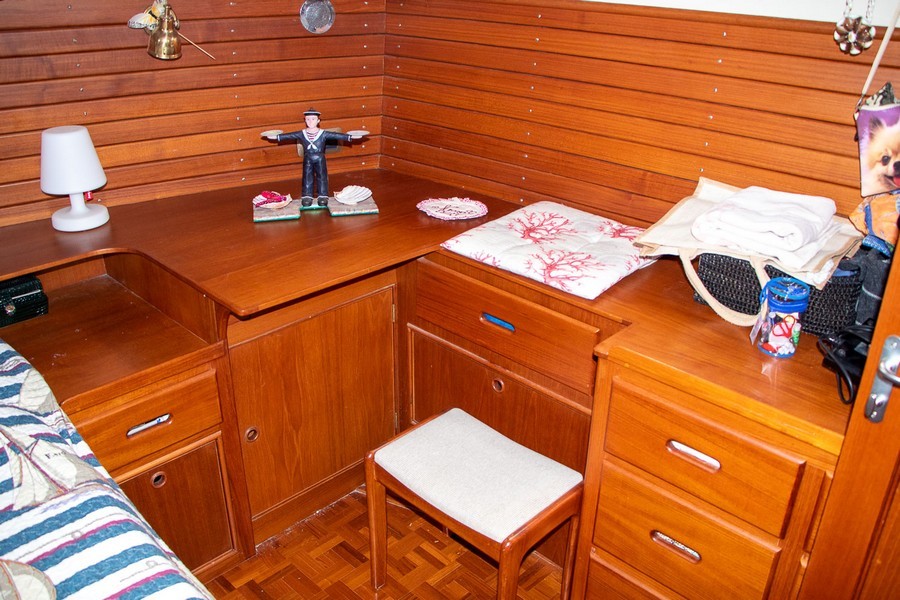 Le Grand Banks 42 Motoryacht est un trawler dont la réputation est connue pour ses qualités marines ainsi que celles de ses aménagments. Ce modèle est une version 3 cabines très équipée. Le moteur tribord a été installé neuf en 2021 et le babord a eu une révision complète en 2021 également. Il dispose d’un propulseur avant et d’un propulseur arrière. L’électronique est de 2022 et il possède égalemet un système de caméra intérieure et extérieur. 4 panneaux solaires de 300W chacun lui permet une autonomie totale au mouillage. A l’intérieur du bateau vous bénéfiez de la climatisation et de tout le confort utile pour la croisière. Ce Grand Banks est parfaitement entretenu par un propriétaire méticuleux et amoureux des bateaux. La place de port est disponible et privilégiée.