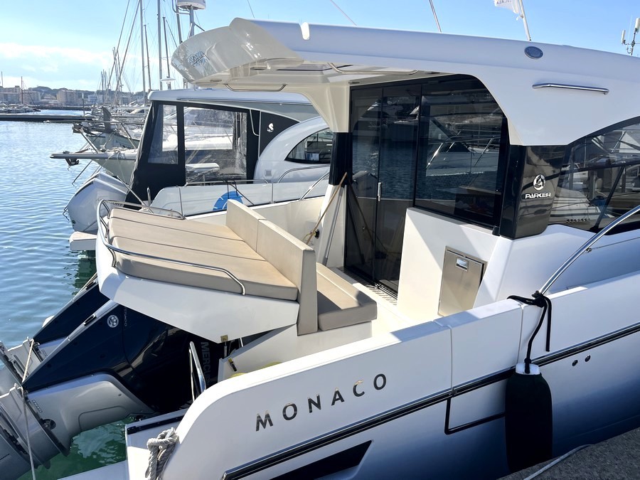 Le Parker Monaco 110 est un bateau à moteur de 11,2 mètres (36 pieds) conçu par Parker Poland en collaboration avec le designer Tony Castro. Il se distingue par son design moderne, sa propulsion hors-bord et son aménagement spacieux, adapté aussi bien aux sorties à la journée qu’aux croisières de week-end. L’architecture combine une silhouette élégante avec une fonctionnalité optimisée, incluant une porte latérale pour un accès facile depuis le quai. Visite posible tous les jours sur rendez – vous. N’hésitez pas à nous contacter si vous souhaitez plus d’informations.