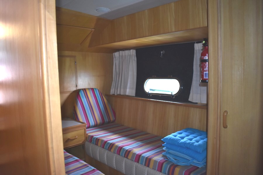 Ce bateau est très spacieux, il a été refité et il est en excellent état. Il permet de naviguer aussi bien en sortie à la journée qu’en croisière de plusieurs jours. Ce bateau propose un très bon rapport qualité / prix avec des équipements très complets. Visite possible tous les jours sur rendez – vous.
